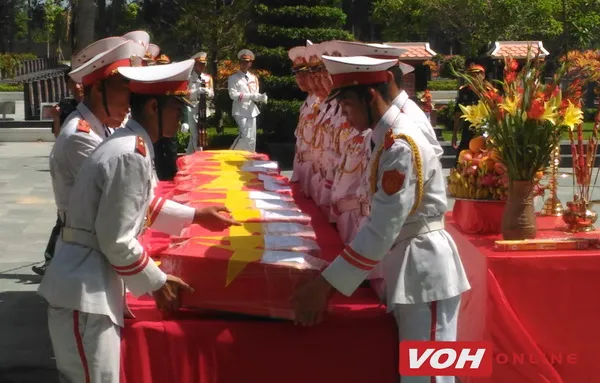 Bí thư Thành ủy TPHCM Đinh La Thăng cùng Bộ Tư lệnh TP và thân nhân các liệt sĩ tổ chức trọng thể lễ an táng 14 hài cốt liệt sĩ thuộc Trung đoàn 2, Sư đoàn 9, Quân Đoàn 4.