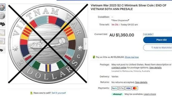 Trước đó, ngày 6/4, Royal Australia Mint đã phát hành những đồng tiền kim loại 2 đô la Úc nhân kỷ niệm 50 năm ngày Úc rút quân khỏi miền nam Việt Nam.