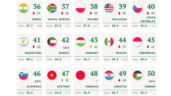 Cụ thể, vị trí của Việt Nam cũng được cải thiện, tăng 2,5 điểm, nâng thêm 3 bậc, từ 50/60 lên 47/105 quốc gia được xếp hạng. Việt Nam được đánh giá là điểm sáng nhờ sự tăng hạng vượt bậc về thương hiệu quốc gia và những kết quả về kinh tế, xã hội đã đạt được trong năm qua.