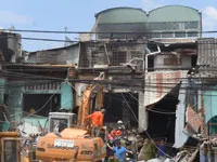 | Hiện trường vụ nổ là đống đổ nát và lực lượng cứu hộ đang tích cực tìm kiếm người mất tích bị chôn vùi. |