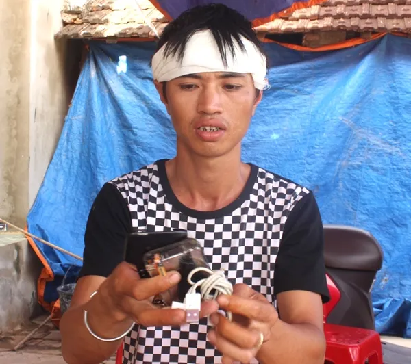 Anh Lê Văn Quân (26 tuổi, chồng chị Liên) cho biết, chiếc điện thoại mà vợ anh đang dùng là điện thoại iPhone 3, được người anh họ (anh họ của anh Quân) cho cách đây 6 tháng trước. Ảnh: Dân trí