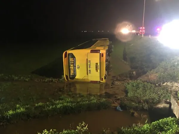 Chiếc xe khách chở 36 người về quê ăn Tết đã tông trúng ô tô con chạy cùng chiều rồi lật xuống ruộng. Vụ tai nạn khiến 5 người bị thương, các nạn nhân đã được đưa đi cấp cứu.