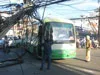 | Trụ điện góc Đinh Bộ Lĩnh - Bạch Đằng gãy ngã ra đường gây kẹt xe. |