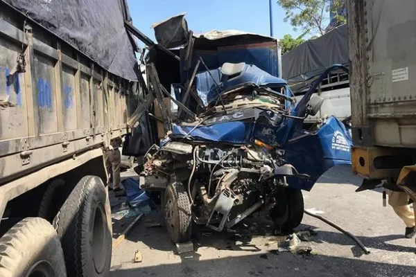 Trong đó, xe tải mang BKS: 61L-7923 bị bẹp phần đầu, phụ xe tử vong trong cabin, nam tài xế tên Hồ Thanh Hưởng bị thương nặng được người dân hỗ trợ đưa đi cấp cứu.