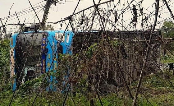 Thời điểm trên, chiếc xe khách mang BKS 69B 004-99 chạy từ hướng Sóc Trăng về Cà Mau thì bất ngờ mất lái, lao sang lề trái rồi lật ngang.
