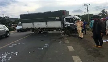 Vào thời điểm trên, chiếc xe khách 16 chỗ chở khách đang lưu thông hướng ngược lại không kịp xử lý và đâm mạnh vào phần đầu chiếc xe tải.