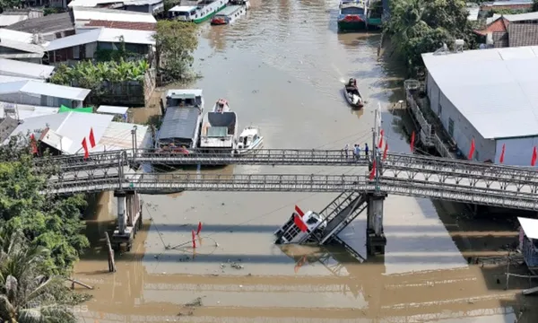 Lực lượng chức năng đồng thời huy động phương tiện trục vớt nhịp cầu lên bờ nhằm sớm khơi thông luồng cho sà lan, tàu thuyền chở lúa gạo và vật tư nông nghiệp lưu thông an toàn.