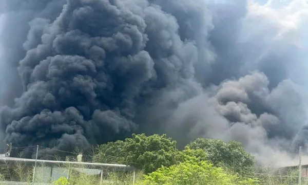 Người dân xung quanh cho biết họ nghe thấy một tiếng nổ lớn, sau đó lửa nhanh chóng bùng phát dữ dội và cột khói đen bốc cao hàng trăm mét.