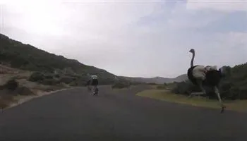 Đoạn clip dài hơn 1 phút quay cảnh 2 cua rơ xe đạp bị một chú đà điểu với chiều cao hơn chiếc xe ô tô, dùng hết sức để đuổi theo khiến dân mạng không thể nhịn cười. Người bạn quay clip này đã không nhịn được cười khi thấy 2 cua-rơ rất hoảng sợ và đạp thật nhanh để tránh kẻ “truy sát” phía sau.