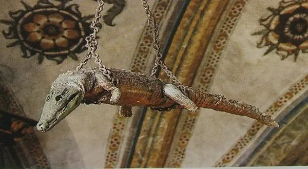 Trong Kitô giáo thời kỳ đầu, các loài bò sát như rắn, rồng và cá sấu thường được gắn liền với tà ác. Chúng được coi là hiện thân của quỷ dữ hoặc là những sinh vật cám dỗ con người phạm tội. Do đó, việc treo con cá sấu trên trần nhà thờ có thể được lý giải theo hai cách: vừa là lời cảnh báo cho các tín đồ, vừa là biểu tượng cho chiến thắng của thiện giáo trước thế lực xấu xa.