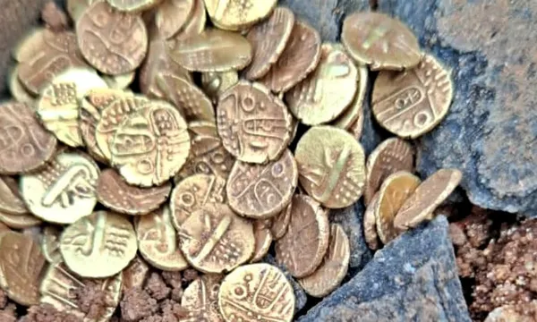 Phát hiện 103 đồng tiền vàng trong chiếc nồi đất chôn dưới ngôi đền cổ ở Ấn Độ