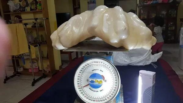 “Viên” ngọc trai khổng lồ, nặng 34 kg, ban đầu được tìm thấy bên trong một ngao khổng lồ, một nhân viên du lịch tên Aileen Cynthia Amurao tại Puerto Princesa cho biết.