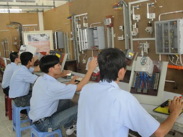 Học viên ngành điện thực hành tại Trường Trung cấp nghề Kỹ thuật Công nghệ Hùng Vương (ảnh: hungvuongtech.edu.vn)