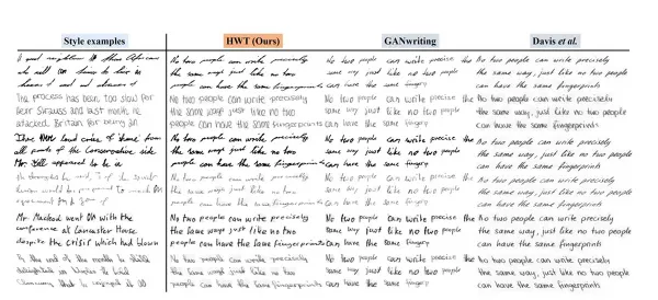 Họ phát hiện ra rằng khi kiểu tạo hình ảnh văn bản viết tay (HWT) được hiển thị cho 100 cá nhân so với các kiểu viết do máy tính tạo ra khác thì kiểu viết trước đây là kiểu ưa thích, để nắm bắt chính xác chữ viết của một người trong 81% thời gian.