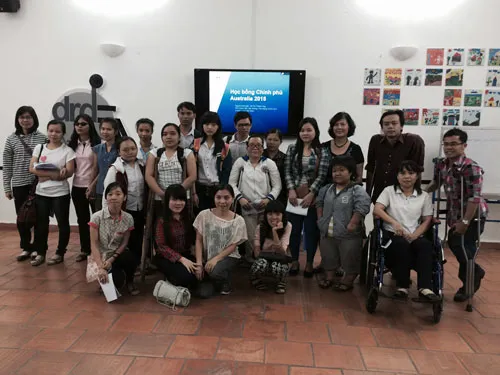 Các bạn thanh niên khuyết tật TP HCM và các tỉnh tại buổi gặp gỡ đại diện Học bổng chinh phủ Úc ngày 9/11 tại Trung tâm khuyết tật và phát triển (ảnh: Ngọc Thanh)