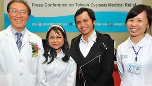 | Bác sĩ Hung Chi Chen, chị Nguyễn Thị Ngọc Mai cùng em trai tại Bệnh viện Đại học Y khoa Trung Hoa của Đài Loan (ảnh: AFP) |