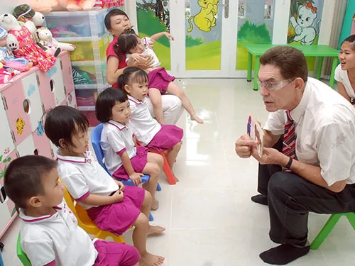 Bên cạnh đó, những trường chỉ dạy chay tiếng Anh cũng không được thực hiện. Cơ sở vật chất nhà trường cần đáp ứng việc giảng dạy ngoại ngữ là hoạt động trải nghiệm giúp cho trẻ làm quen với tiếng Anh qua hình ảnh, phim hoạt hình, bài hát… Theo ông Trần Minh Ngôn, Trưởng Phòng GD-ĐT Quận 4, tùy theo tình hình của từng trường có mức xã hội hóa đầu tư trang thiết bị phù hợp để đảm bảo lợi ích cho trẻ khi tiếp cận với tiếng Anh: “Rất đa dạng, địa bàn khó khăn thì có những loại hình cho con em tiếp cận với giáo dục tiên tiến, những nơi thuận lợi xã hội hóa mạnh hơn thì tất cả con em đều được quyền lợi tham gia những lớp như tiếng Anh để phát triển” .