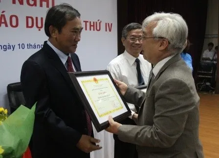 PGS.TS Phan Thanh Bình - Giám đốc Đại học Quốc Gia TPHCM trao bằng khen cho đơn vị xuất sắc tại hội nghị (ảnh: GD&TĐ)