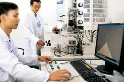 | Cán bộ phòng thí nghiệm công nghệ nano thuộc Đại học Quốc gia TP.HCM làm việc tại phòng chế tạo màng (thin films deposition) - Ảnh: khoahoc. |