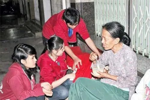 Hoạt động phát cháo đêm từ thiện làm "ấm lòng bao người vô gia cư. Nguồn: Internet.