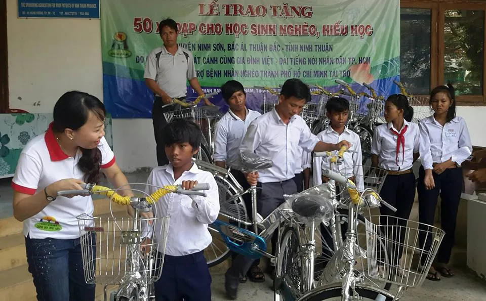 Đài Tiếng nói Nhân dân thành phố Hồ Chí Minh trao tặng xe đạp cho học sinh nghèo vùng núi tỉnh Ninh Thuận.