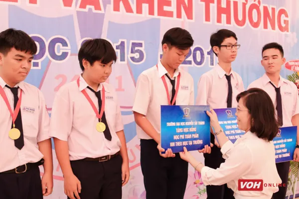 5 học sinh đạt Huy chương vàng Olympic Toán học cấp TP nhận học bổng tại buổi lễ tổng kết.