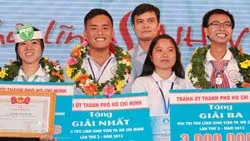 | Danh hiệu “Thủ lĩnh Sinh viên” TP.HCM 2013 đã thuộc về bạn Huỳnh Vũ Duy (thứ hai từ trái qua) - Ảnh: TTO |
