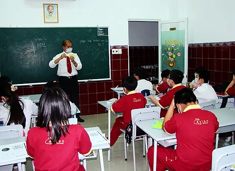 Thầy và Học sinh trường tiểu học quốc tế Á Châu trong lớp học. Ảnh: Đức Quang - Timnhanh |