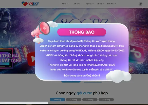 Từ 23g59 ngày 10/10/2023, 4 nhà mạng ảo tại Việt Nam gồm iTel, Wintel, VNSKY và Local đã đồng loạt tạm ngưng cung cấp dịch vụ đăng ký thông tin thuê bao trực tuyến, ngưng cho kích hoạt sim qua ứng dụng trực tuyến. Quyết định trên của các nhà mạng được đưa ra nhằm thực hiện chỉ đạo của Bộ Thông tin và Truyền thông.