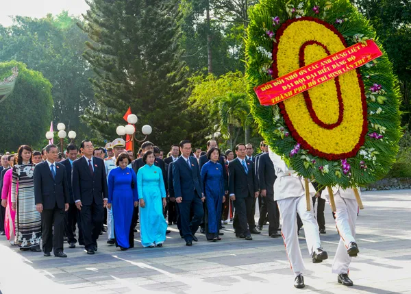 Lãnh đạo TP dâng hương, hoa lên các anh hùng liệt sĩ (Ảnh: Thanhuytphcm)