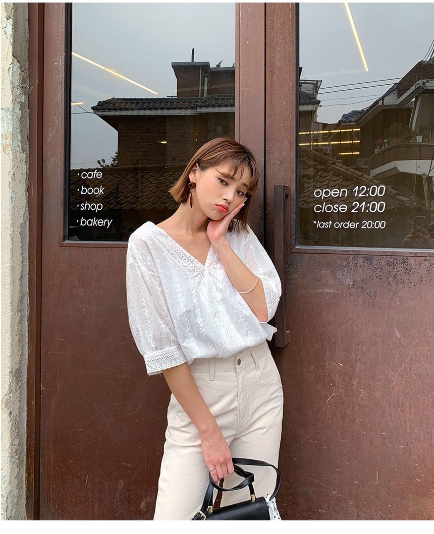 Dù chỉ diện sơ mi cùng quần jean nhưng những chi tiết ren, cổ trụ,... vẫn đủ sức mang đến nét dịu dàng cho bạn