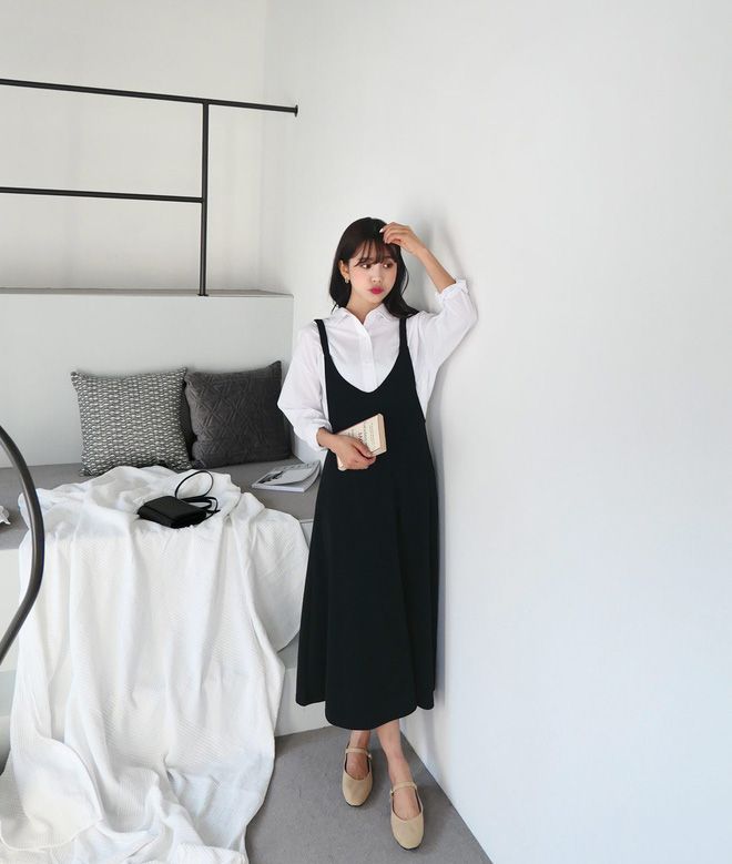 Một cách kết hợp vừa lạ vừa quen mà ít nàng công sở nào nghĩ tới chính là phối áo sơ mi trắng cùng với yếm. Nét thanh lịch, nghiêm túc của áo sơ mi trắng kết hợp cùng phong cách trẻ trung, phá cách của những chiếc váy hoặc quần yếm chắc chắn sẽ mang đến một làn gió mới mẻ, trendy cho bạn gái tự tin diện đi làm mỗi ngày.