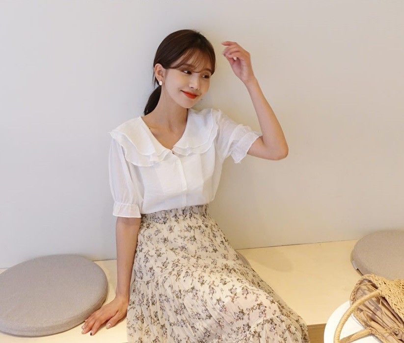 Ưu tiên những chiếc áo sơ mi trắng kiểu cách như tay phồng, cổ trụ, tay loe