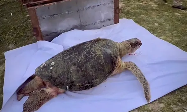 Trước đó, chiều 17/10, trong lúc khai thác gần bờ, ngư dân phát hiện xác rùa biển trôi dạt vào bãi. Cá thể rùa có mai màu nâu xám, dài gần 1 mét, nặng hơn 100 kg, trên vùng mặt có vết thương. Ngư dân đưa rùa lên bờ, báo cho miễu Bà Vàng và thực hiện nghi thức “rước bà về miễu” để lo hậu sự.