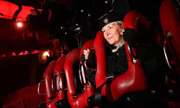 Bà Jackie Smith, sống gần Stonehenge ở Wiltshire, Anh Quốc sẽ được biết đến là người đầu tiên đam mê cảm giác mạnh của tàu lượn tại Alton Towers, thử nghiệm các trò chơi cho công viên giải trí này.
