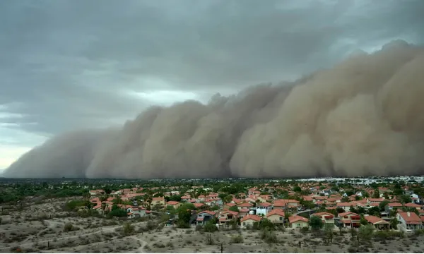 Cơn bão bụi khổng lồ tiến gần đến khu vực đô thị Phoenix. Bụi mịn từ cơn báo có thể len lỏi qua "mọi khe hở nhỏ nhất" vào từng ngôi nhà - Ảnh: AP