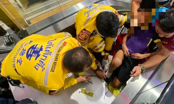 THÁI LAN - Một cậu bé 12 tuổi đã bị thương nghiêm trọng sau khi chân cậu bị kẹt vào thang cuốn tại một trung tâm mua sắm nổi tiếng ở tỉnh Nakhon Si Thammarat, miền nam Thái Lan.