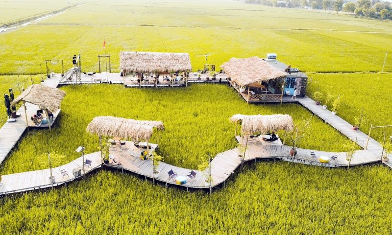 Nằm ngay dưới chân núi Trầm, quán cà phê view đồng lúa tại xã Phụng Châu (huyện Chương Mỹ) đang là địa điểm được giới trẻ yêu thích nhất tại thủ đô.