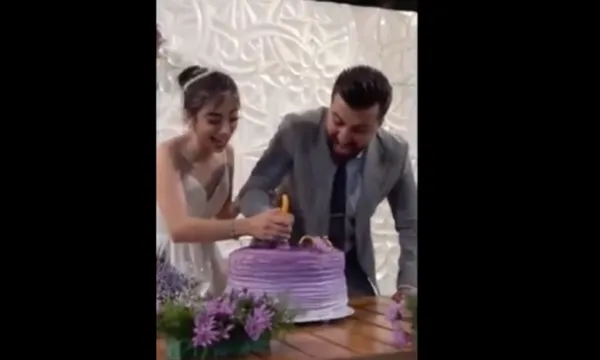 Ngay sau khi cắt xong bánh, chú rể đã bất ngờ nắm đầu cô dâu và dúi thẳng vào chiếc bánh. Lớp kem phủ kín khuôn mặt và mái tóc của cô dâu, để lại sự sững sờ và bất ngờ trên gương mặt cô. Trong khi đó, chú rể tỏ ra vô cùng thích thú với hành động của mình, giơ tay lên trời và mời cô dâu đập tay với mình như một chiến thắng.