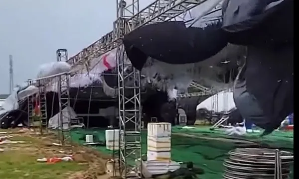 Theo hình ảnh lan truyền trên mạng xã hội Facebook, một rạp cưới tại sân vận động thôn An Hòa đã bị gió quật tơi tả, các bàn tiệc đã được chuẩn bị sẵn nhưng không thể dọn tiệc để đón khách.