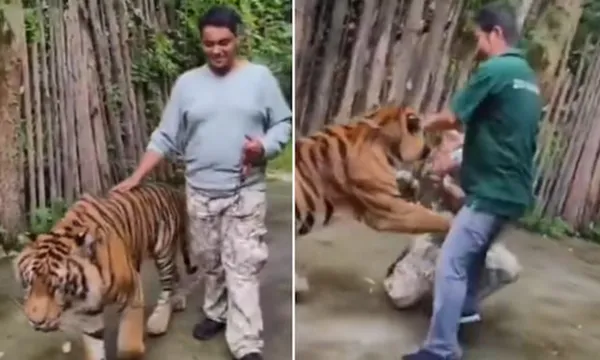 Ngay sau đó, con hổ trở nên hung dữ và lao vào người đàn ông Ấn Độ.