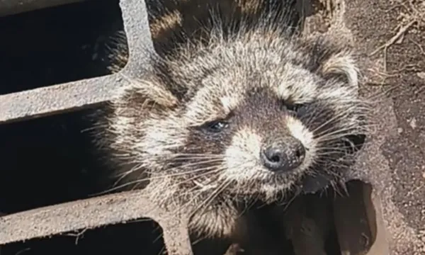 Cảnh sát Massachusetts, Mỹ và một người qua đường tốt bụng đã đến giải cứu một con gấu trúc bị mắc kẹt chỉ với đầu nhô ra khỏi lỗ trên lưới thoát nước mưa.'