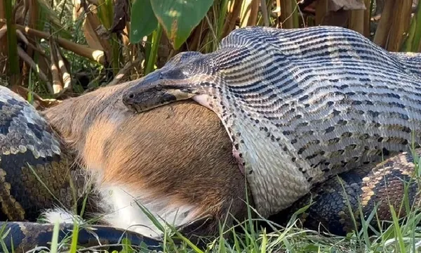 Trong bài đăng trên Live Science hôm 24/10, một chuyên gia trong nhóm mô tả con trăn, chiều dài 4,5m nặng 52kg, cố mở miệng ra hết cỡ để từ từ đưa con hươu đuôi trắng nặng khoảng 35kg vào trong bụng.