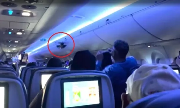 Một video lan truyền trên mạng cho thấy, một hành khách đã cố gắng dùng một mảnh quần áo để tóm lấy con chim bay lạc trong khi những hành khách khác la hét ở phía sau.