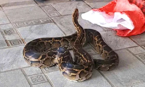 Người dân bắt được trăn hoa quý nặng hơn 7kg đang dạo chơi trong vườn
