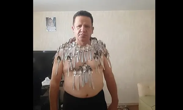 Một người đàn ông Iran đã giữ thăng bằng 96 chiếc muỗng trên cơ thể để phá Kỷ lục Guinness thế giới lần thứ ba.