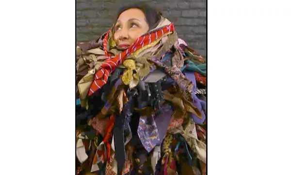 Người phụ nữ Canada đeo 360 chiếc cà vạt gần như chìm mất khuôn mặt trong đám cà vạt