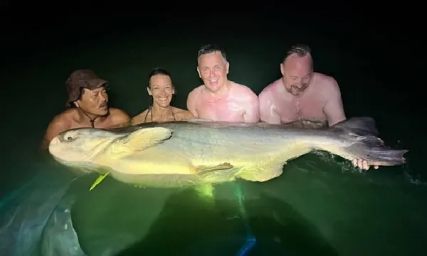Tại khu nghỉ dưỡng câu cá Gillhams, Thái Lan, nữ cần thủ Kate Rivers đã mất tới hai giờ đồng hồ chiến đấu đầy kịch tính mới có thể kéo được con cá khổng lồ lên khỏi mặt nước. Con cá được cho là nặng hơn 1,3kg so với kỷ lục trước đó do một người phụ nữ nắm giữ.