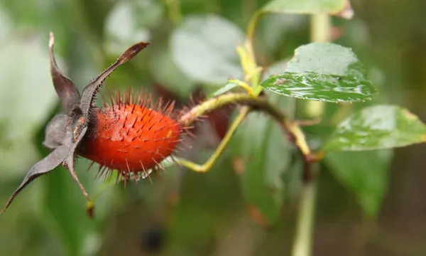 Cây kim anh cho ra quả màu đỏ, mọc đầy gai tua tủa. Tuy đáng sợ nhưng loại quả này có vị chua ngọt khi chín rất thơm ngon, không chỉ ăn sống mà còn có thể dùng để nấu rượu hoa quả và giấm hoa quả, làm thực phẩm và đồ uống.