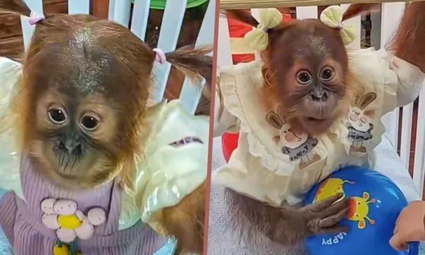 Trong những tuần gần đây, các đoạn video clip ghi lại cảnh một con tinh tinh cái mặc quần áo con gái và được tết tóc tỉ mỉ đã lan truyền trên mạng xã hội ở Trung Quốc.